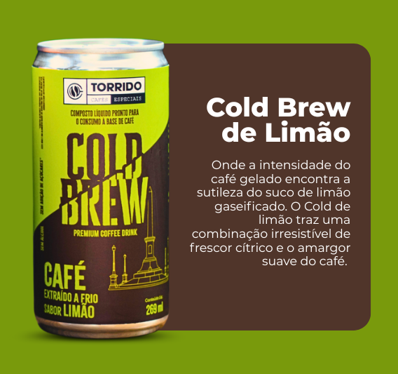 O Cold Brew TORRIDO é preparado a partir da infusão de grãos de café de alta qualidade em água fria por um longo período de tempo.