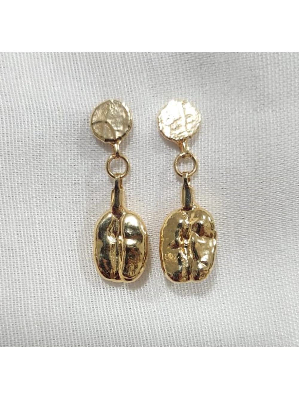 Brinco Pendente Ouro Rosê 18K com Grão de Café Bourbon