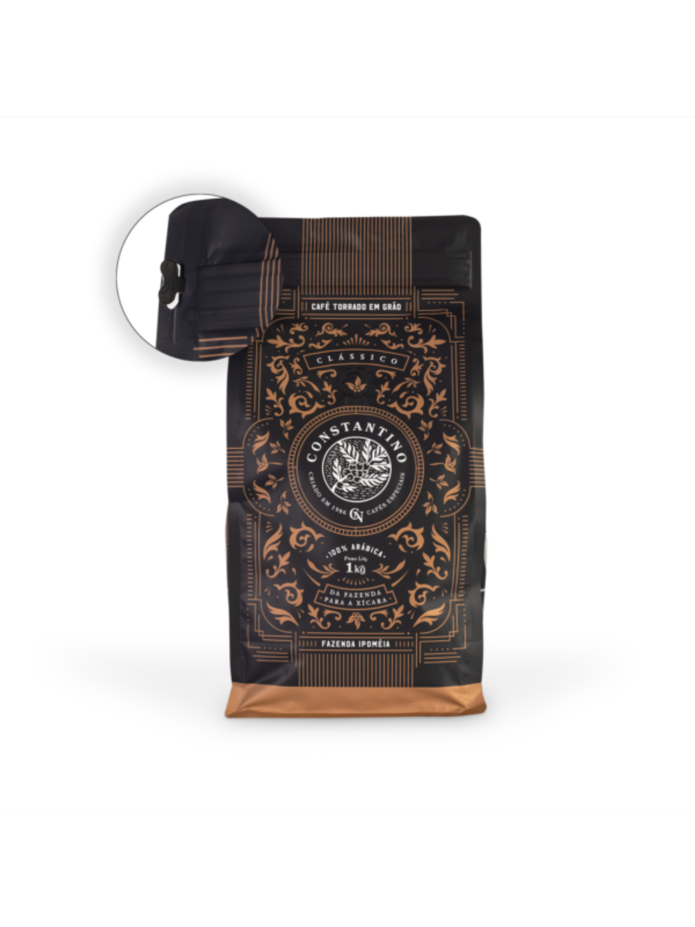 O Café Constantino é especial de origem única, contendo em sua embalagem 100% grãos arábica.